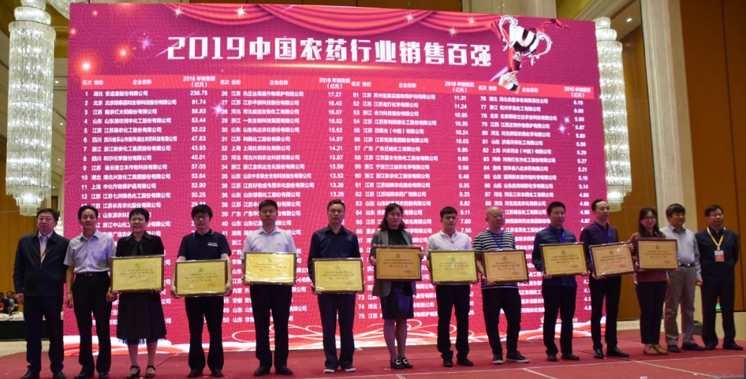 5月15日,安徽合肥,2019中國農藥行業銷售百強企業榜單在“第六屆農藥行業經濟運行分析會暨農化行業排行榜發布會”上隆重揭曉。安道麥股份有限公司以238.75億元的銷售額獨占鰲頭,北京穎泰嘉和生物科技股份有限公司及南京紅太陽股份有限公司分別以61.74億元和58.83億元的銷售額,位居榜眼和探花之位。