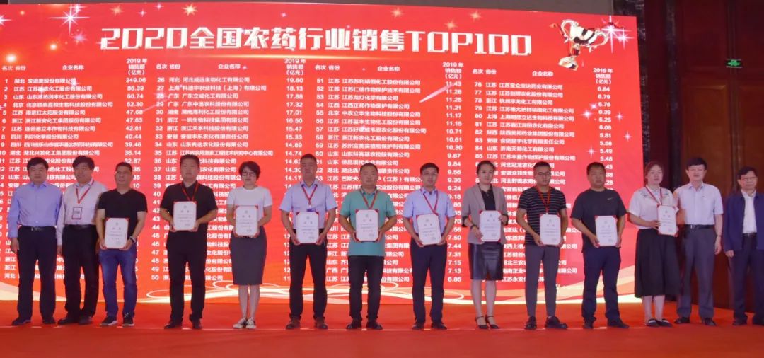 6月10日,山東青島,2020全國農(nóng)藥行業(yè)銷售TOP100在第七屆農(nóng)藥行業(yè)經(jīng)濟(jì)運(yùn)行分析會(huì)暨農(nóng)藥行業(yè)排行榜發(fā)布會(huì)上隆重揭曉。安道麥股份有限公司以249.06億元的銷售額蟬聯(lián)榜首。江蘇揚(yáng)農(nóng)化工股份有限公司連升3名,以86.39億元的銷售額排名第二,山東濰坊潤豐化工股份有限公司以60.74億元的銷售額排名第三。