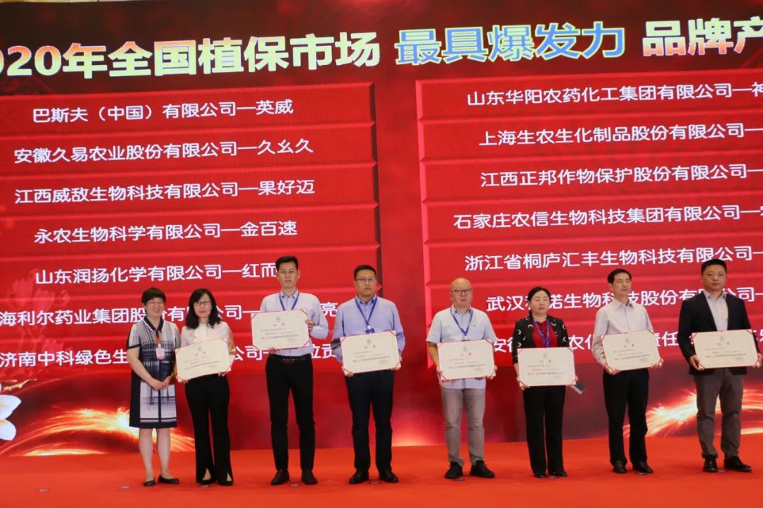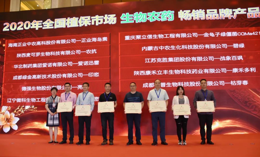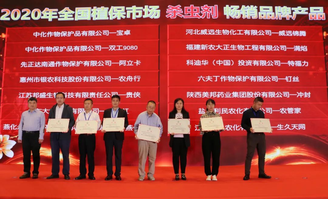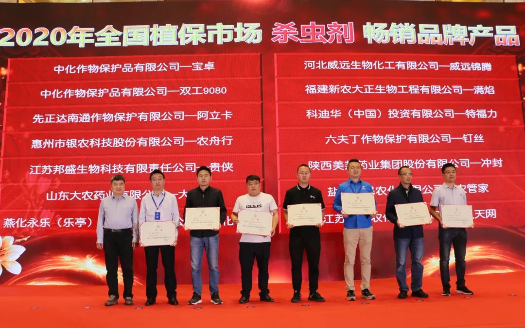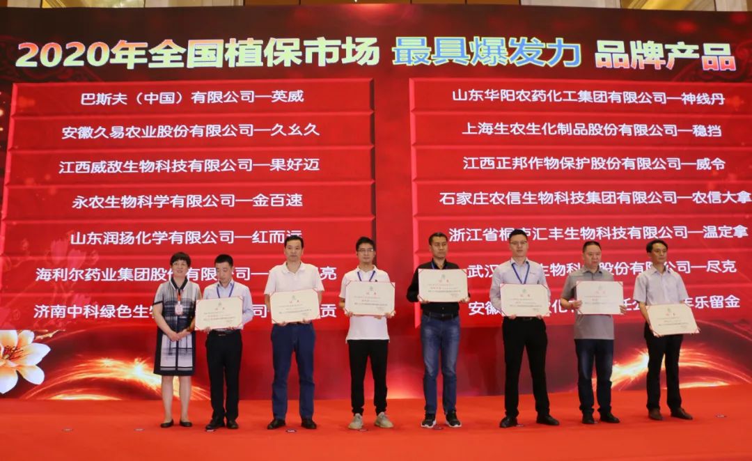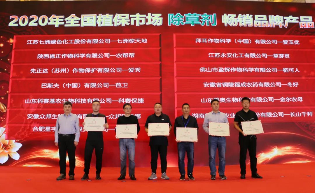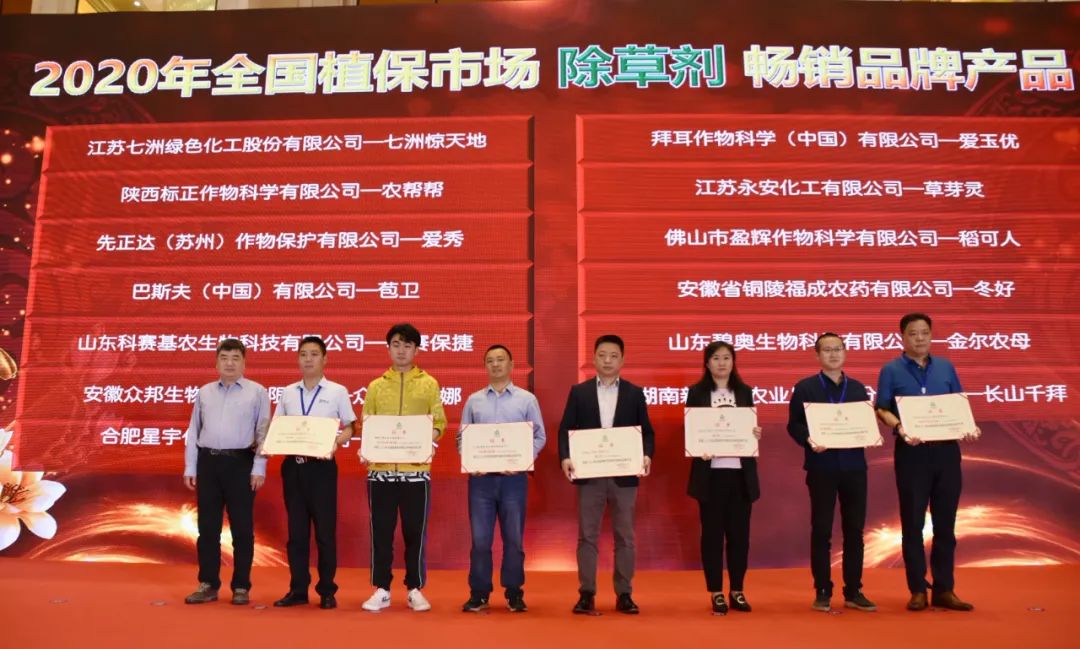 5月13日,安徽合肥,“2020年全國植保市場暢銷品牌產(chǎn)品”在第八屆農(nóng)藥行業(yè)經(jīng)濟(jì)運(yùn)行分析會暨農(nóng)藥行業(yè)排行榜發(fā)布會上隆重揭曉。